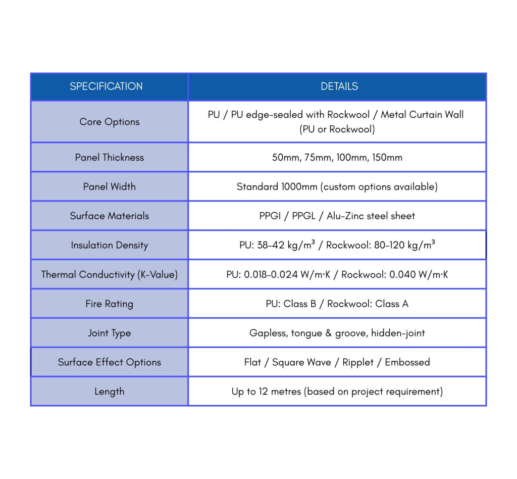 - High Thermal Insulation with thermal conductivity values around 0.035 W/m·K (rock wool) and 0.025 W/m·K (polyurethane), enhancing temperature regulation